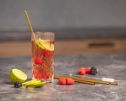 Sareva Herbruikbare Rietjes – Met Borstel – Goud – Gebogen – 4 Stuks