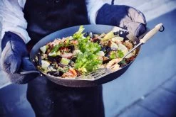 Ben jij al bekend met de heerlijke, Spaanse specialiteit paella? Met de BK Paellapan Black Steel ø 38 cm maak je voortaan paella ook gemakkelijk thuis! De pan is gemaakt van plaatstaal met een natuurlijke antiaanbaklaag. Hoe vaker je de pan gebruikt, hoe beter de antiaanbakeigenschappen worden. Dit wordt ook wel de patinalaag genoemd. Mocht deze laag zijn werking verliezen, dan kan je de pan opnieuw inbranden. De pan heeft een gietijzeren handvat en is geschikt voor alle warmtebronnen. Na gebruik moet die met de hand worden afgewassen.