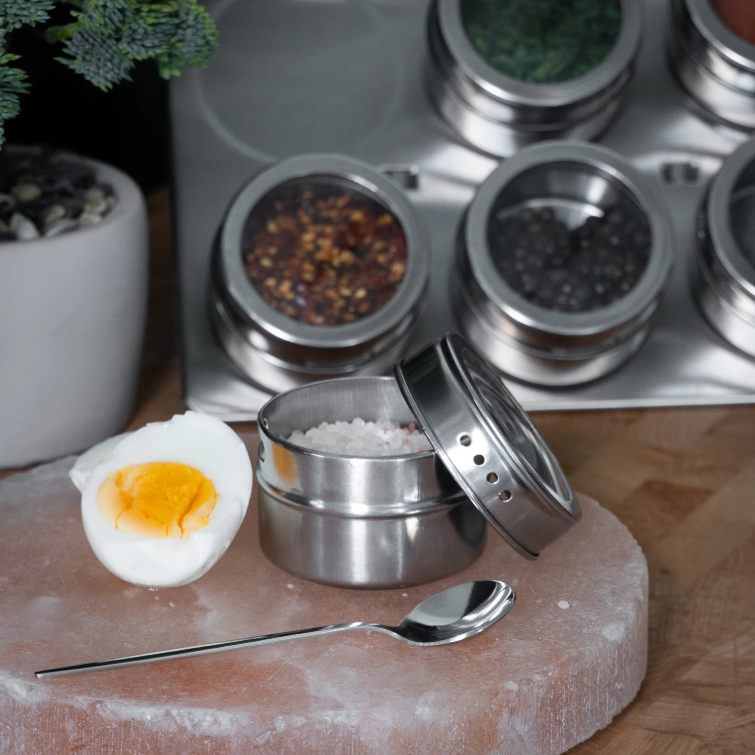 Let op! vergeet niet het beschermplasticje van de glazen af te halen. Ook zijn de potjes magnetisch, hierdoor blijven ze dus aan de standaard vast zitten. De potjes van de Blackwell Kruidenpotjes Magnetisch 9 potjes zijn voorzien van 2 verschillende openingen op de kruiden uit te strooien, voor precies de gewenste hoeveelheid!