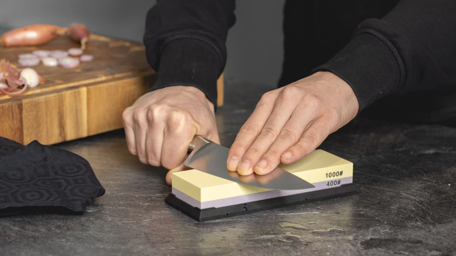 Bij het gebruiken van een wetsteen is het belangrijk dat je veilig werkt en dat de steen niet verschuift tijdens het slijpen, leg de steen hiervoor in de meegeleverde anti-slip houder. Daarnaast is het belangrijk dat je altijd werkt in oplopende korrelgrootte en dat je de messen van top tot teen over de steen slijpt. Voor een uitgebreide gebruiksaanwijzing kan je de keuzegids: ‘Hoe gebruik ik een wetsteen?’ lezen.