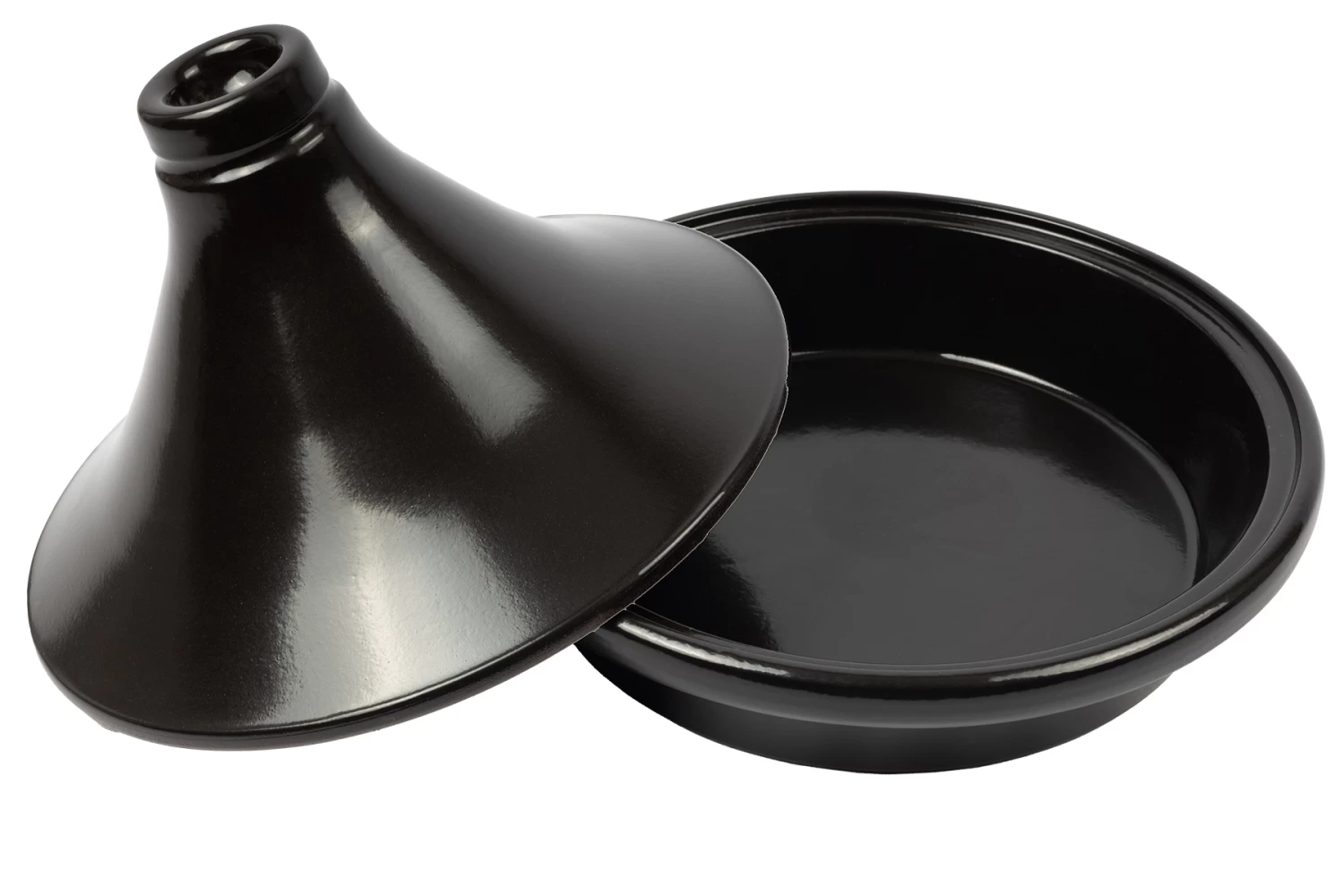 De Cookinglife Tajine, gemaakt van aardewerk, is een traditioneel Marokkaans kookgerei. Deze tajine heeft een diameter van 32 cm en een inhoud van 3 liter, ideaal voor het bereiden van stoofgerechten. Hij is geschikt voor gebruik op gas, elektrisch, halogeen en keramische warmtebronnen, maar niet op inductie. Handgemaakt in Spanje, het zwarte design brengt een authentieke sfeer in elke keuken.