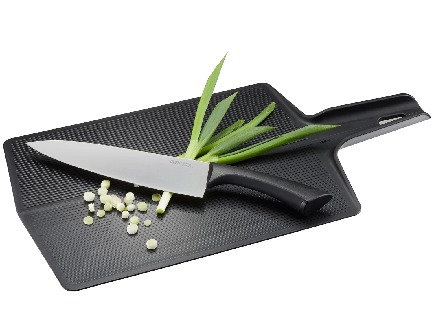 Met de opvouwbare snijplank van Gefu kun je gemakkelijk je groenten snijden. Als de groenten gesneden zijn kun je met alle gemak de groenten in de pan schuiven. Daarnaast is hij natuurlijk ook gemakkelijk om restjes afval weg te gooien zonder te morsen naast je prullenbak. De opvouwbare snijplank is vaatwasserbestendig.