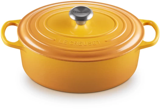 Met deze Le Creuset Braadpan Ovaal Signature in het Nectar haal jij een echte eyecatcher in huis. De braadpan heeft een diameter van 29 centimeter en een inhoud van 4.7 liter, dit maakt hem geschikt voor 5 a 6 personen. De braadpan is groot genoeg om een hele lamsbout te braden en smal genoeg om ruimte over te laten in de oven voor extra bereidingen.