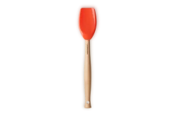 Deze Le Creuset Lepelspatel Premium in het oranjerood is een echte alleskunner. Je kunt niet alleen eten mengen of omscheppen tijdens het koken, maar ook uitschrapen en opdienen. Dit maakt hem onmisbaar in elke keuken. De lepelspatel is gemaakt van hoogwaardig hout en afgewerkt met een siliconen blad. Het siliconen blad laat geen krassen achter en is geschikt voor pannen met een antiaanbaklaag. De spatel is hittebestendig tot 250 °C.