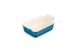 Deze Le Creuset Ovenschaal in de kleur deep teal is onmisbaar in je keuken. De schaal heeft een afmeting van 19 bij 14 centimeter en een inhoud van 1.1 liter. De ovenschaal is gemaakt van aardewerk wat de warmte gelijkmatig verdeeld. Het aardewerk is thermoresistent van – 23 °C tot + 260 °C. Zijn rechthoekige vorm maakt hem geschikt voor allerlei soorten ingrediënten, waardoor hij uiterst veelzijdig is om dagelijks mee te roosteren, bakken, marineren en serveren.