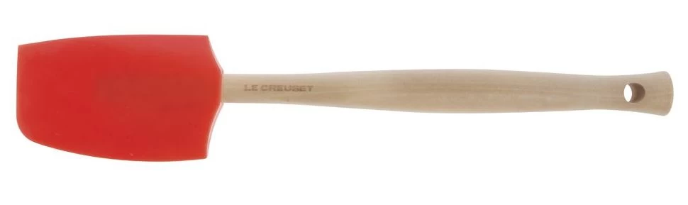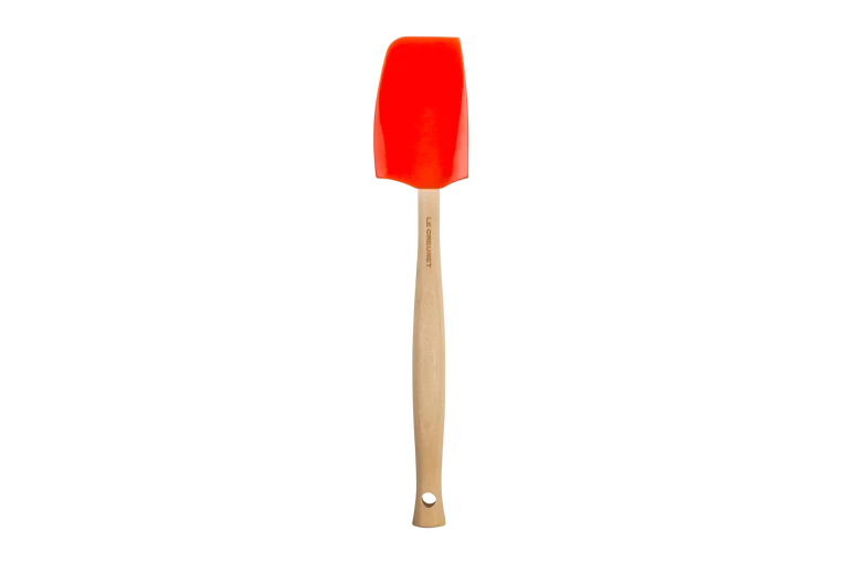 Deze middelgrote Le Creuset Premium in het oranjerood is geschikt voor allerlei doeleinden en heeft het ideale formaat voor dagelijks gebruik. Dit hulpmiddel staat voor je klaar bij het voorbereiden, roeren of sauteren van ingrediënten. De spatel is gemaakt van hoogwaardig hout en afgewerkt met een siliconen blad. Het siliconen blad laat geen krassen achter en is geschikt voor pannen met een antiaanbaklaag. De spatel is hittebestendig tot 250 °C. Klaar met koken? Verwijder het siliconen blad, zodat je hem eenvoudig kan reinigen.