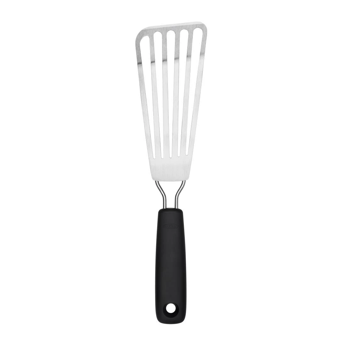 Deze Bakspaan RVS met sleuven van OXO Good Grips is perfect voor het bereiden van vis. Het slanke blad schuif je gemakkelijk onder de vis, om hem vervolgens te draaien of te serveren. De lange, mooi gevormde sleuven zorgen ervoor dat overtollig vet eenvoudig wegloopt. Deze bakspaan is voorzien van een zachte, comfortabele anti-slipgreep en een ophangoog. Na gebruik mag hij in de vaatwasmachine.