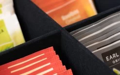 Hou al je theezakjes overzichtelijk bij elkaar met deze Theedoos Hout 6-vaks – met Fluweel – 24 x 16 cm! De theedoos is gemaakt van hout en heeft 6 vakjes. Ook heeft hij een doorzichtige deksel, zodat je gemakkelijk alle theesmaken kan zien. De theedoos heeft een afmeting van 24 x 16 cm en de binnenkant is van fluweel.