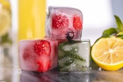 Met ijsblokjes uit deze Cookinglife ijsblokjeshouder koelen je cocktails sneller. Door hun uitzonderlijke grootte smelten de ijsblokjes ook trager, waardoor je drank langer zijn smaak behoudt. De ijsblokken kunnen per 8 stuks worden gemaakt en krijgen een een grootte van 5 x 5 x 5 cm. Bovendien is de ijsblokjeshouder gemaakt van siliconen, waardoor de bollen er gemakkelijk uit te krijgen zijn.