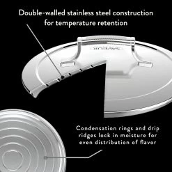 Met de drielaagse 18/10 roestvrijstalen constructie met aluminium kern wordt deze Kookpan snel en gelijkmatig warm. De deksel is gemaakt van dubbelwandig roestvrij staal met interne lekranden en condensatieringen die vocht vasthouden om de smaak gelijkmatig door je gerecht te verdelen.