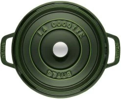 - De platte deksel sluit de Staub cocotte perfect af. Dankzij de speciale druppelstructuur wordt het vocht gelijkmatig opgevangen onderaan de deksel en regent terug over de bereiding.