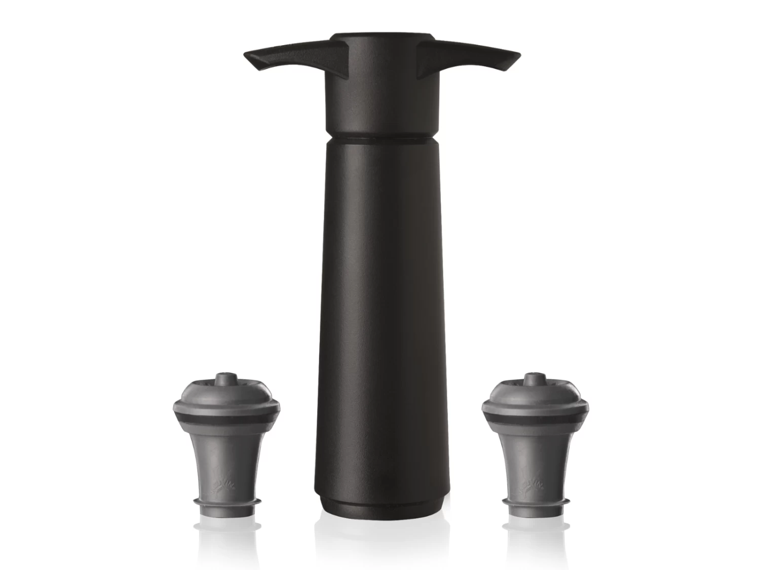 Met de Vacu Vin Wine Saver met 2 wijnstoppers in de kleur Zwart kan wijn worden afgesloten. De wijnpomp haalt met behulp van de Vacu Vin wijnstopper de zuurstof uit de wijnfles. De wijnfles is vacuum na het horen van een klik geluid. Hierdoor kan de wijn tot 10 dagen worden bewaard, nadat de wijn is geopend. Met deze wijnpomp gaat de wijn minder snel oxideren en blijft de wijn langer goed.