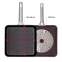 Deze grillpan van het Spaanse merk Valira is geschikt voor alle warmtebronnen, dus ook voor inductie! Deze grillpan is ideaal om groenten, vlees of vis in te bereiden. De pan is voorzien van een PFOA-vrije keramische anti-aanbaklaag, hierdoor is de pan warmtebestendig tot wel 350 °C. De pan is gemaakt van duurzaam aluminium, dit maakt de pan erg licht en makkelijk te verplaatsen. De grillpan is 28 cm lang en 28 cm breed en beschikt over een handvat van roestvrijstaal die niet warm zal worden tijdens het koken. Voor lang en duurzaam gebruik is het aan te raden de pan met de hand schoon te maken in plaats van in de vaatwasser, hierdoor zal je er langer plezier van hebben!