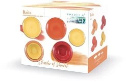 Met de Villa d’Este Serviesset Baita – Sunset – 12-delig / 4 personen wordt het eten een feest! Deze serviesset bestaat namelijk uit Diverse kleuren, waardoor jij een vrolijke tafel dekt! Het servies is gemaakt van Aardewerk en is geschikt voor 4 personen. Daarnaast is het ook nog met de hand geschilderd, waardoor elk stuk uniek is! Na het gebruiken van de Villa d’Este Serviesset Baita – Sunset – 12-delig / 4 personen kunnen deze eenvoudig worden gereinigd in de vaatwasser. De serviesset bestaat uit: