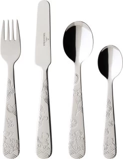 Haal deze leuke Villeroy & Boch Kinderbestek Hungry as a Bear in huis voor jouw kleine! De bestekset is gemaakt van 18/10 roestvrij staal en voorzien van een leuk printje op het bestek. De set bestaat uit een klein lepeltje, lepel, vork en mes. Na he gebruiken van de Villeroy & Boch Kinderbestek Hungry as a Bear kan deze eenvoudig worden gereinigd in de vaatwasser.