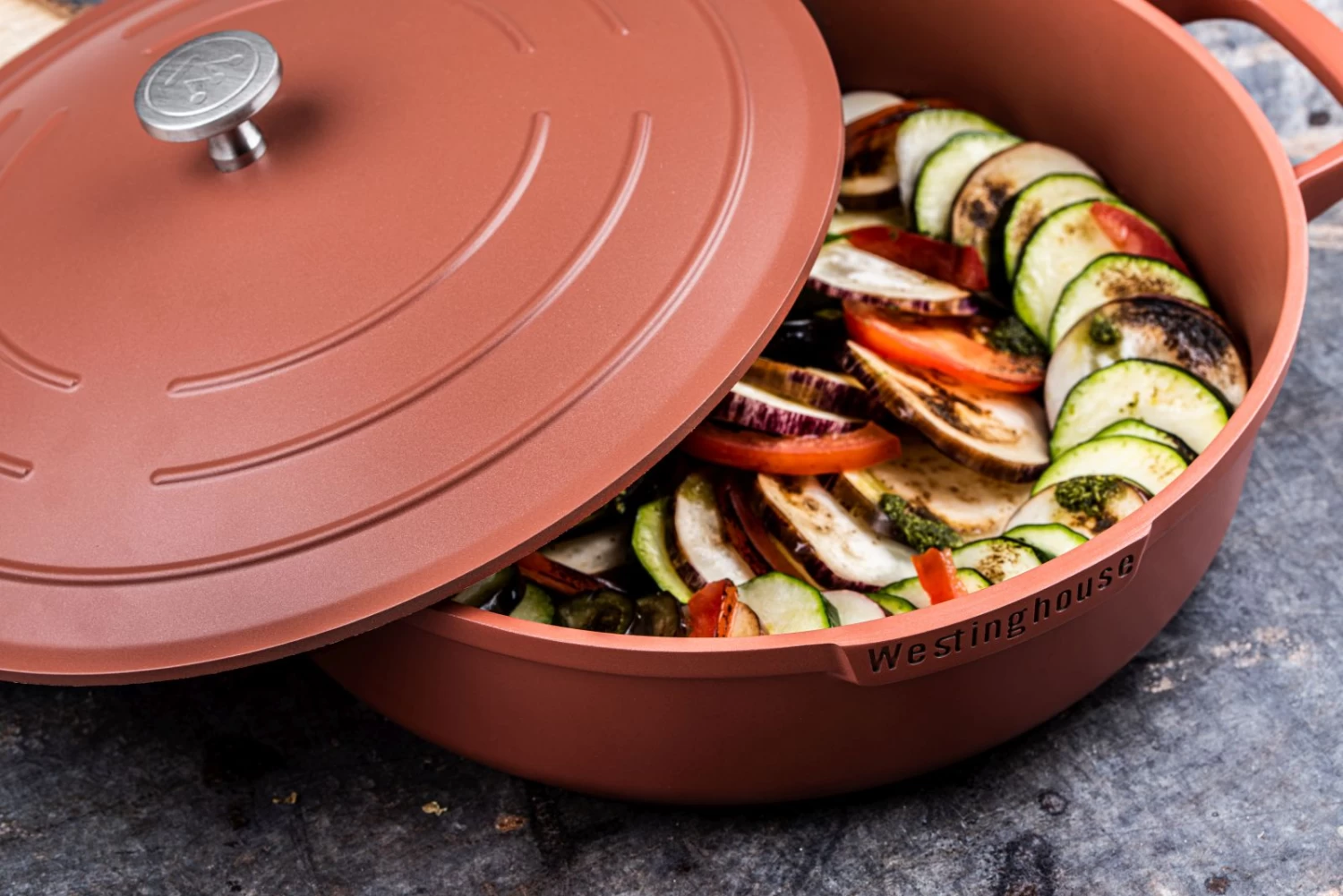 Deze hapjespan van Westinghouse is ideaal voor het bereiden van stoofpotjes, gerechten met een sausje of dikke stukken vlees. Dankzij de spikes onderaan de deksel blijft condens zich vormen waardoor er druppels ontstaan die je gerechten lekker sappig houden. Het roestvrijstalen handvat zorgt ervoor dat je niet je handen verbrand tijdens het verplaatsen van de pan.