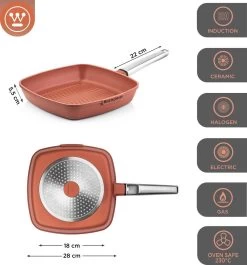 De Westinghouse Performance pannen zijn gemaakt van gegoten aluminium, waardoor ze veel lichter zijn dan de pannen van gietijzer. Hierdoor worden deze pannen drie keer zo snel warm als gietijzeren pannen en zijn ze veel makkelijker te verplaatsen van kast naar fornuis. Daarnaast zijn de pannen geschikt voor alle fornuizen en ovens!