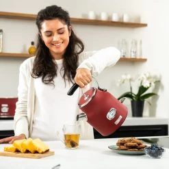 De Westinghouse Retro Waterkoker bied je de mogelijkheid om op een snelle manier water te koken voor uw middagthee, koffie of soep. Het water kookt razendsnel dankzij het hoge wattage van 2.200 W. De waterkoker beschikt ook over geïntegreerd licht dat aan gaat wanneer het water begint met koken. Hij is ook voorzien van een automatische uitschakeling, wanneer het water klaar is met koken. Dankzij de uitneembare anti-kalk filter en het droogkookbeveiliging-systeem is de waterkoker ook veilig in gebruik.