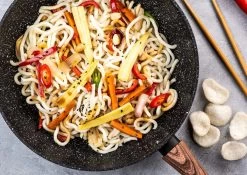 Maak een heerlijk wokgerecht klaar met deze Westinghouse Wokpan Marble ø 30 cm Wood! De pan is gemaakt van gesmeed aluminium en voorzien van een 3-laagse niet klevende marmeren coating. Het handvat heeft een houten look en deze wordt niet heet tijdens het koken. Daarnaast is de wokpan geschikt voor alle soorten warmtebronnen. Na het gebruiken van de Westinghouse Wokpan Marble ø 30 cm Wood kan deze eenvoudig worden gereinigd in de vaatwasser.