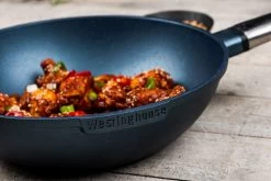 Deze wokpan van Westinghouse is perfect voor het wokken, bakken en braden van vlees, vis en groente. Maar ook voor fonduen en het maken van soepen. Dankzij de spikes onderaan de deksel blijft condens zich vormen waardoor er druppels ontstaan die je gerechten lekker sappig houden. Het roestvrijstalen handvat zorgt ervoor dat je niet je handen verbrand tijdens het verplaatsen van de pan.