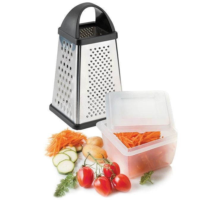 De torenrasp van Westmark is perfect om groenten en fruit mee te raspen. Hij heeft vier verschillende raspen en een opvangbak om de geraspte groenten en fruit in op te vangen. Daarnaast heeft hij een ergonomisch handvat waar je je vingers uit de buurt van de raspen kan houden.