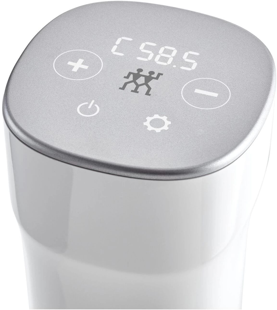 Met de Zwilling Sous Vide Stick Enfinigy – Nauwkeurige temperatuurinstelling – IPX7 Waterproof – Zilver/Wit is koken onder vacuüm nog nooit zo gemakkelijk geweest. Sous vide koken is een culinaire techniek waarbij voedsel, vlees, vis, groenten of fruit in vacuüm gesloten zakken zit en in een warm water bij een lage temperatuur wordt gekookt.